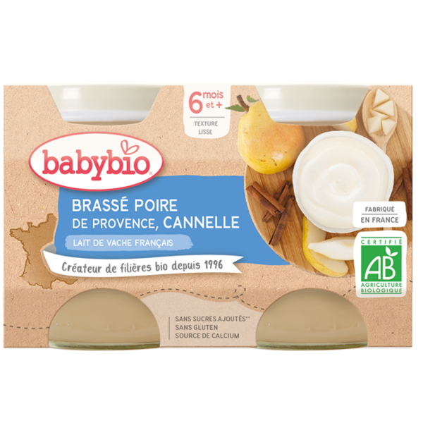 Babybio Brassé Pear and Cinnamon Cow milk +6months 2x130gr